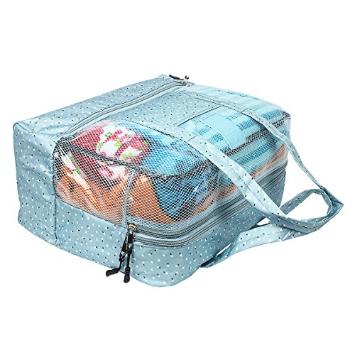 5. Large capacity: 2 big bags (1 wet bag and 1 dry bag ); 1 outside small bag for small objects ,keys ,cards , moblile phones and etc; 1 bottom bag with 1 zipper , suit for shoes , towel or need separated items .