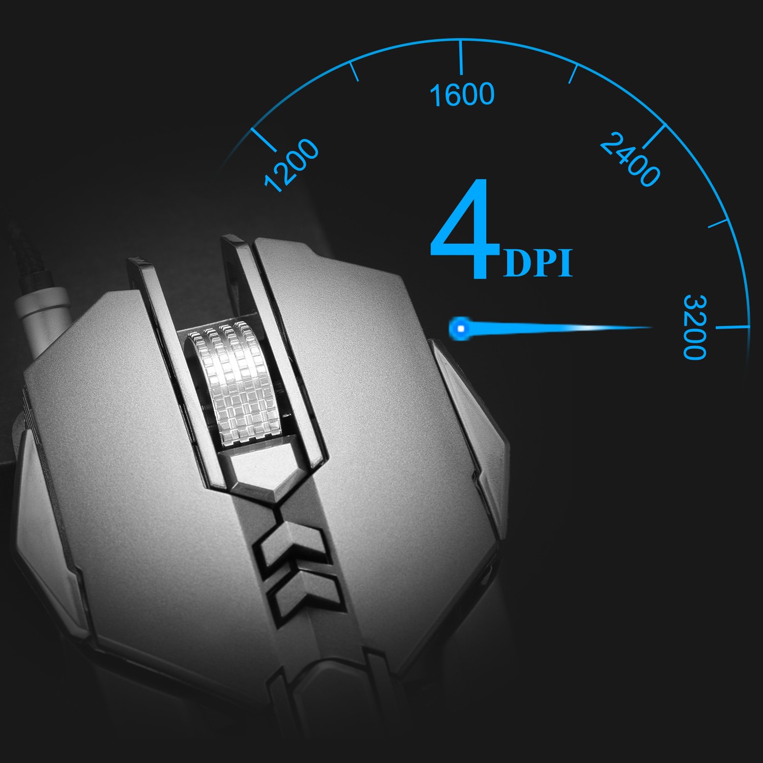 ✪ 4 step DPI with LED light: DPI: 1200 - 1600 - 2400 - 3200 It is possible to easily adjust by the installed DPI changeover switch.