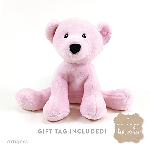 -. Title : Andaz Press Plush Toys Collection, Pink Girl Teddy Bear with Fancy Frame Gift Tag, 1-Pack, Stuffed Animal Toy for Gift, Baby Shower, Birthday, Christmas Present