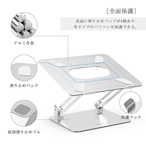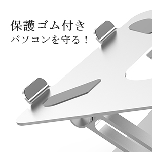 安心な滑り止めパッドが上下両面(接地側およびパソコン側)の接地面に付いているので、大切なパソコンを保護します。