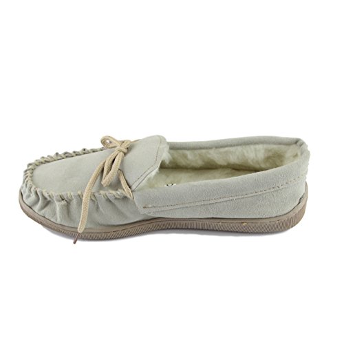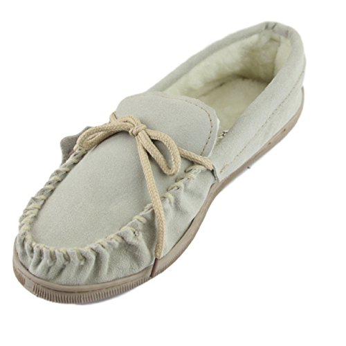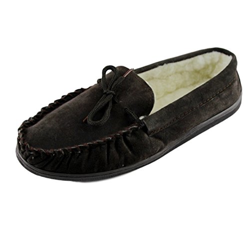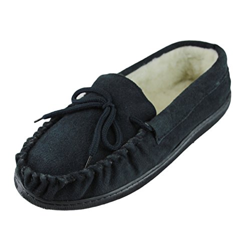 Deluxe Mens Lambswool Moccasin Slippers with Extra Thick Hard Sole - Suede Upper
