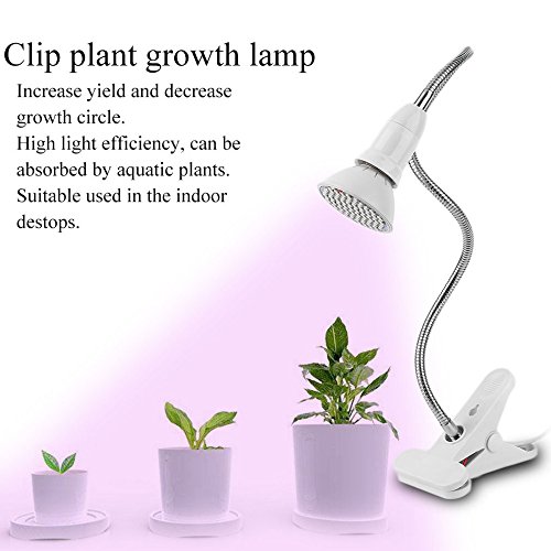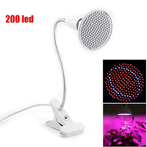 -. Feature : IMITATES NATURAL SUNLIGHT - Total of 200 LED lights; 34 blue and 166 red diodes for a balanced spectrum; blue light produces fuller plants while red light encourages bud and fruit growth; grows healthier house plants in low light / ADJUSTABLE, FLEXIBLE, GOOSENECK ARM - A flexible, adjustable long flexible arm allows you to bend it any way you like and the clamp is strong and secure. / COOL TO THE TOUCH - 20w LED grow light bulb is 25% more powerful than standard bulbs; won't dry out soil or plants; won't burn fingers or hands; energy efficient aluminum material shell has good heat dissipation, low heat and low power consumption, high luminous efficiency and long service life. / SUPERIOR LIFE SPAN - Grow light for indoor plants such as cactus and succulents; lasts up to 50,000 hours; provides almost 6 years of continuous use; seldom needs replacing; cost effective / SUITABLE FOR balconies, greenhouses, darkroom, office and so on. Widely apply to the culture solution, gardening, family balcony seeding / seedling / breeding, Flower Show, potted plants, especially when the plant needs extra light when raining, snowing, dark indoor, etc