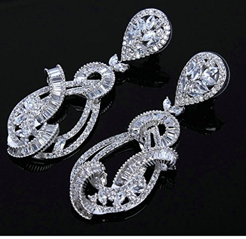 -. Title : Womens Drop Earrings Gold Plated White Irregular Spiral Pollished Cubic Zirconia Crystal Drill by Aienid