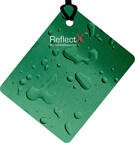 ReflectX Travel Shower Mirror (Green) Clad. Shatterproof. Easily Eliminate Fog and Shadows. Includes An Adjustable Hanging Rope, Two Large Stainless Steel Removable Adhesive Hooks And A Travel Bag.