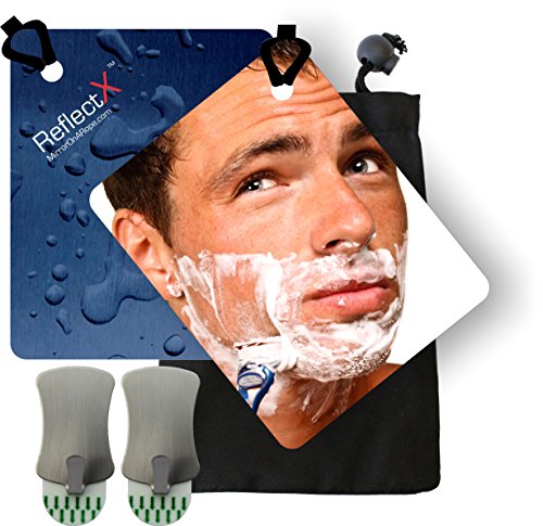 ReflectX Travel Shower Mirror (Wet Steel) Clad.Shatterproof.Easily Eliminate Fog and Shadows.Includes An Adjustable Hanging Rope, Two Large Stainless Steel Removable Adhesive Hooks And A Travel Bag