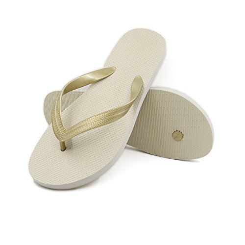 MR.SWEETIE Men's Beach Y-shaped Slippers, Summer Shower Flip-flops Sandal (US9, Gold)