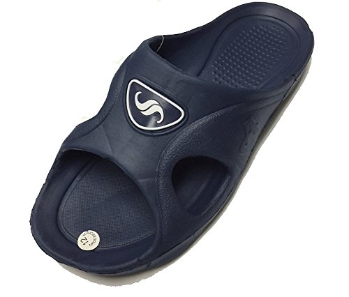 Gear One Men's Rubber Slide Sandal Slipper Comfortable Shower Beach Shoe Slip On Flip Flop S-Blue size 8/9 D(M) US