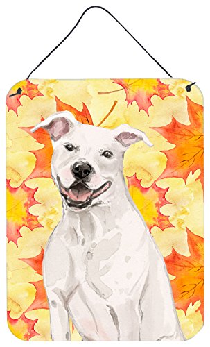 Caroline's Treasures White Staffie Bull Terrier Fall Metal Print, 16" x 12", Multicolor