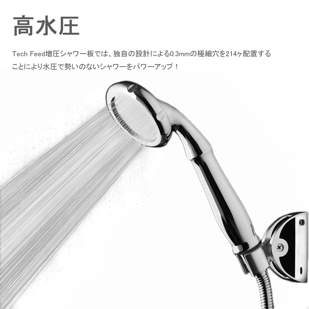 You can use it with comfortable water momentum even at low water pressure facilities and high-rise floors. For Tech Feed shower plate, spray water so as to squeeze water at once by placing 214 0.3 mm ultra-fine holes by its own design