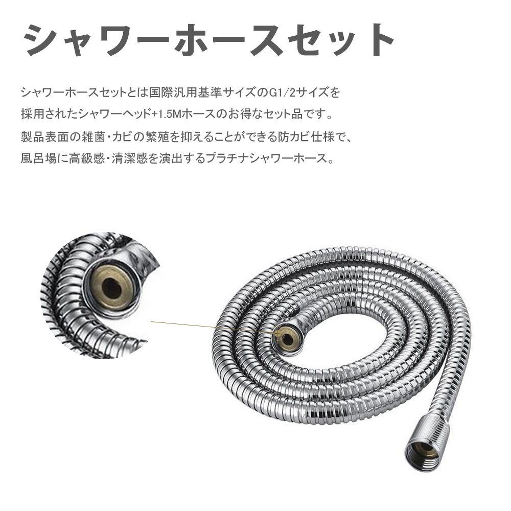 The hose is an anti-fungal specification that can suppress breeding of bacteria and fungi on the surface of the product, Platinum shower hose that produces a sense of luxury and cleanliness in the bathroom.