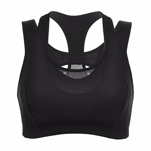 Title : SYROKAN Women's High Impact Double Layer Wirefree Padded Racerback Sports Bra Black XL