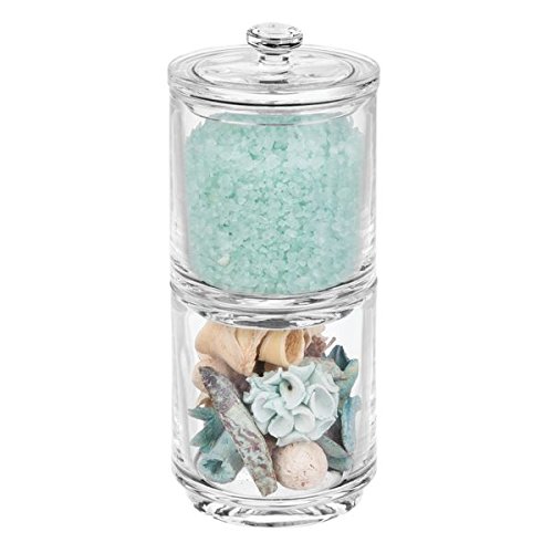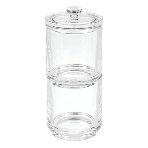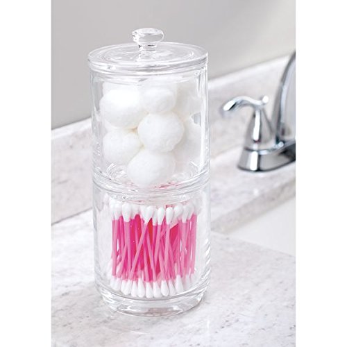 STORAGE MADE STYLISH: This stacking apothecary canister stores Q tips, cotton swabs, cotton balls, cotton rounds, makeup sponges, bath salts and more in a stylish and decorative accent container