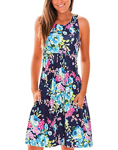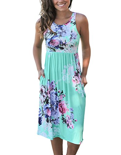 Vemvan Women's Floral Print Racerback Sleeveless Midi Summer Casual Dress
