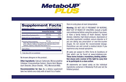 Since MetaboUP is in a convenient tablet, it can go anywhere you do! Throw it in your purse, gym bag, or car and your extra energy will only be a tablet and a glass of water away! As a dietary supplement, take two tablets once daily with at least 8 oz. of water. Store in a dry temperature. The base offer includes one 60-count bottle of MetaboUP PLUS, which if taken as directed, gives you a one-month supply of the product. MetaboUP PLUS is also a great complement to Lipozene. MetaboUP PLUS helps to speed up your metabolism while Lipozene works to make you feel full faster when taken prior to meals. The combination of the two products supplies you with the tools you need to be successful in losing weight - faster metabolism and reduced food consumption.