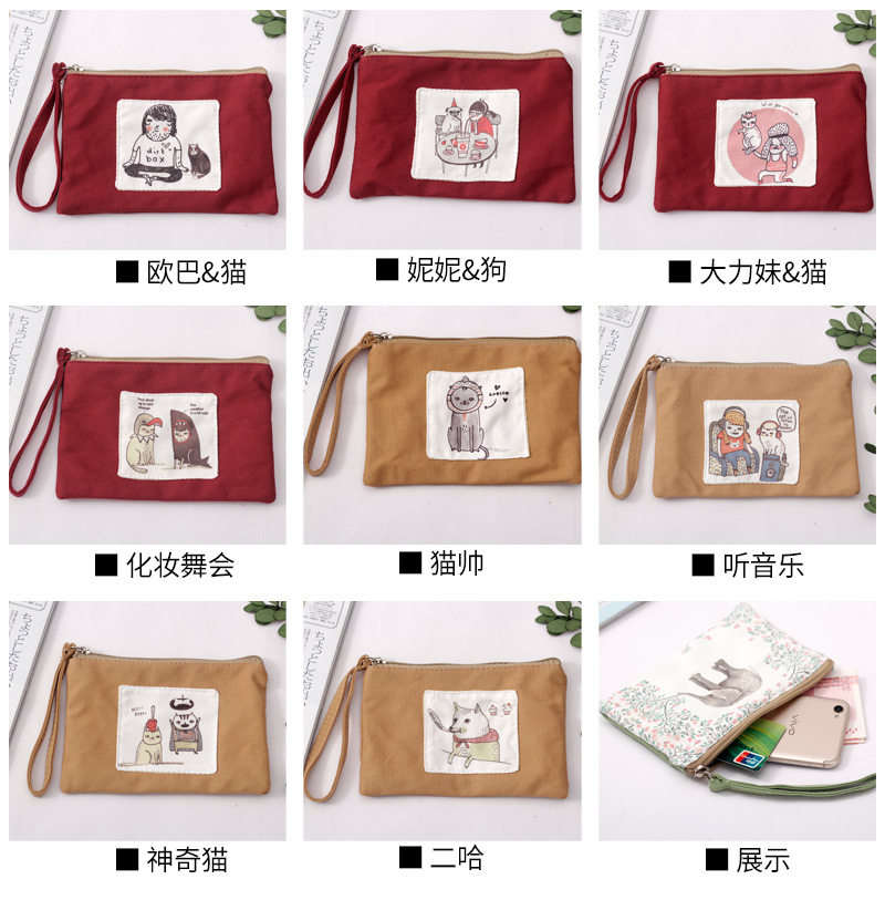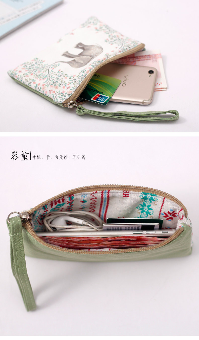 帆布清新长款手机零钱包