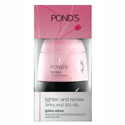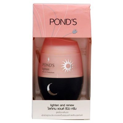 - Feature : Pond's Lighten and Renew Day Cream and Night Cream / Deilvery Times: 18-35 day / AHA to help remove dead skin cells , Reduces dark spots and lightens skin , Pro-Retinol formula / riple sunscreen to protect skin from UVA and UVB, that causes dark spots, freckles and melasma. / 1 Pcs . ( 2 Oz. or 56 g. /Pcs.) Contains both day cream (pink jar) and night cream (black jar) Ships from and sold by onefeelgood shop.