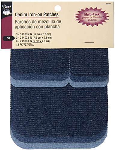 Dritz Denim Iron-on Patches-Asst. Sizes & Colors-12 Ct