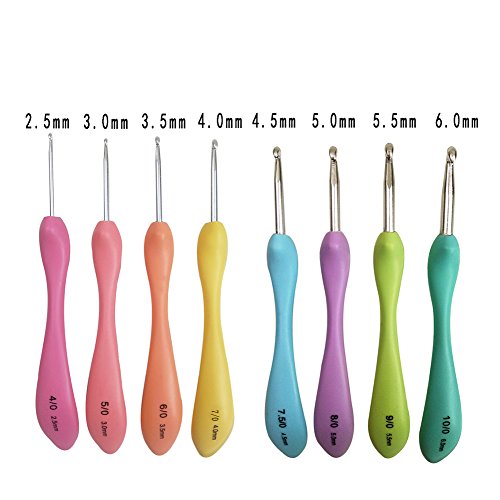 - The most complete ergonomic crochet hooks set --- Comes with 8 sizes hooks from 2mm to 6 mm (2.5mm/ 3mm/ 3.5mm/ 4mm/ 4.5mm/ 5mm/ 5.5mm/ 6mm), meet your different needs