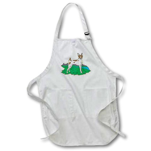 3dRose Cute and Cuddly Canine Rat Terrier - Full Length Apron, 22 by 30-Inch, White, with Pockets (apr_129097_1)