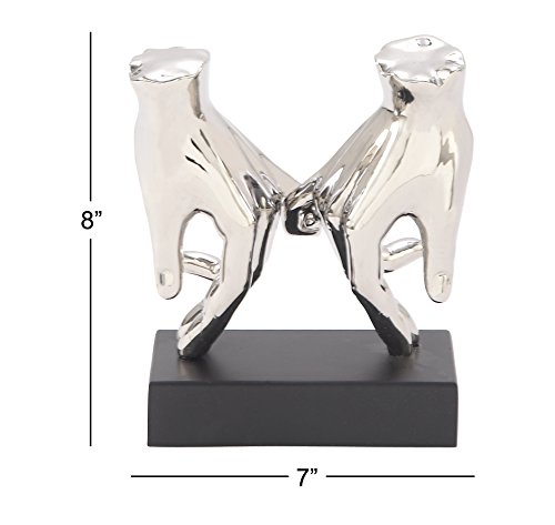Deco 79 96763 Ceramic Silver Hands Sculpture, 7" by 8"