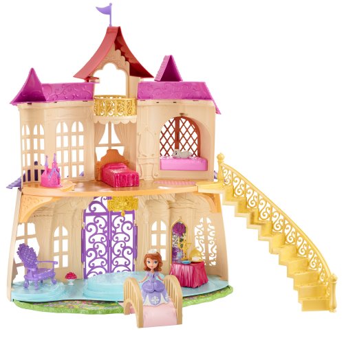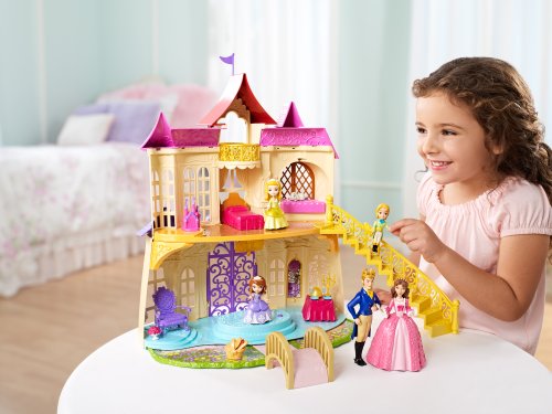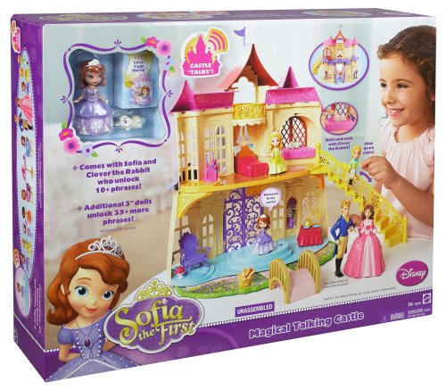 - Feature : Based on the hit new animated series from Disney Junior, Sofia the First / Magical Talking Castle is the perfect place for the charming Sofia the First to call home / Place 3-inch Sofia small doll or Clover the Rabbit figure on the magic base to hear 10+ phrases in each character's voice / Castle includes Sofia doll, Clover figure, magical talking base, furniture accessories and more / Bring in other 3-inch Sofia dolls and figures (sold separately) to unlock more than 35 additional phrases