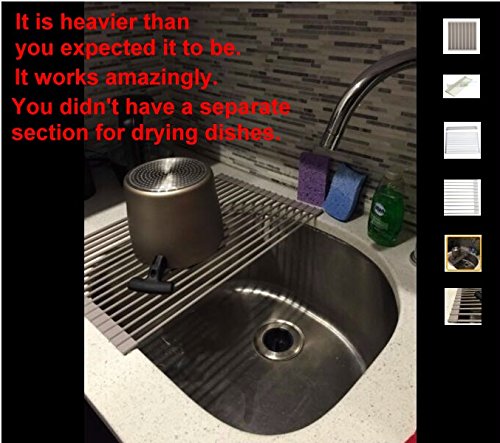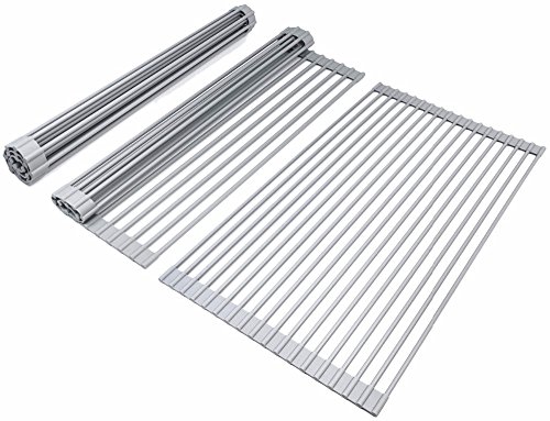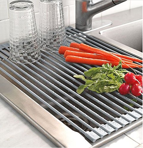 Roll-Up Silicone Dish Drying Rack, Covered Stainless Steel Large 20-1/2"L x 13-1/8"W x 1/4"H (Warm Gray)