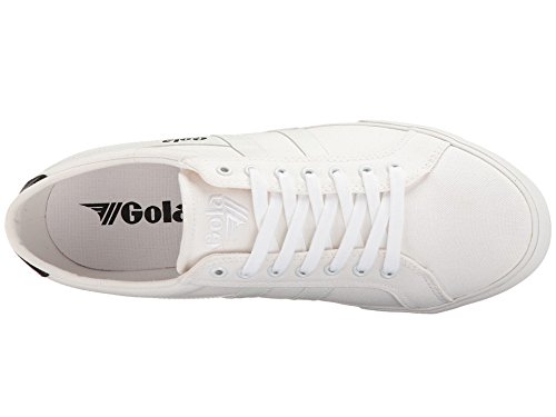 Product Description Gola Classics introduces Varsity, a classic lace up plimsoll. This trainer features a canvas upper and a tonal wingflash. The style is completed with the Gola branding to the wingflash and heel counter This relaxed style looks great when work with jeans and is a definite wardrobe essential for the warmer months. Style # CMA331BW1 0