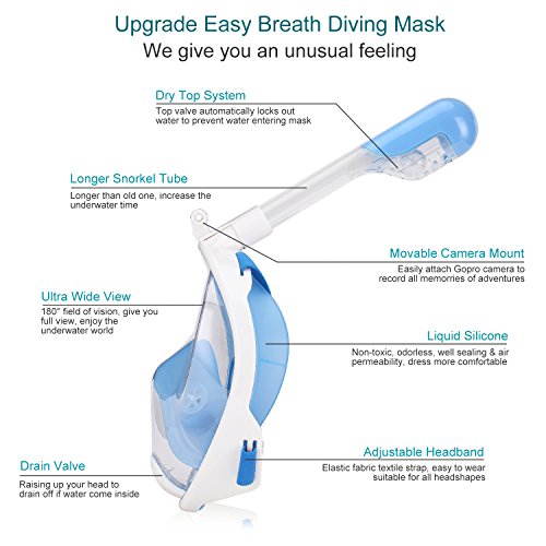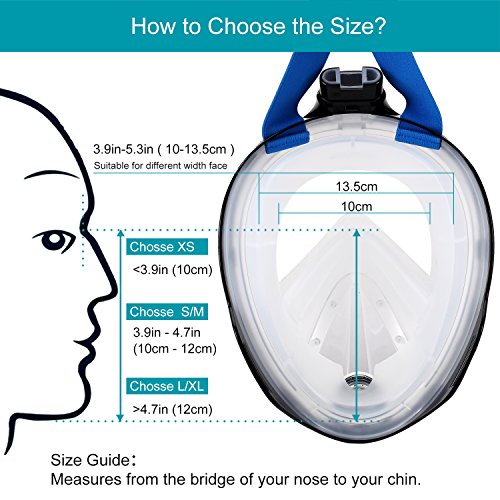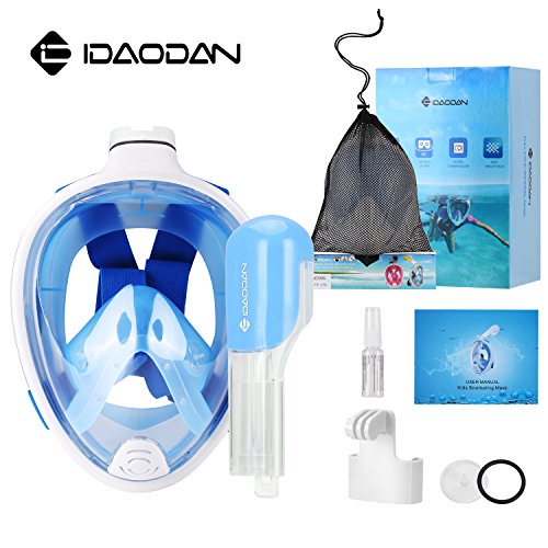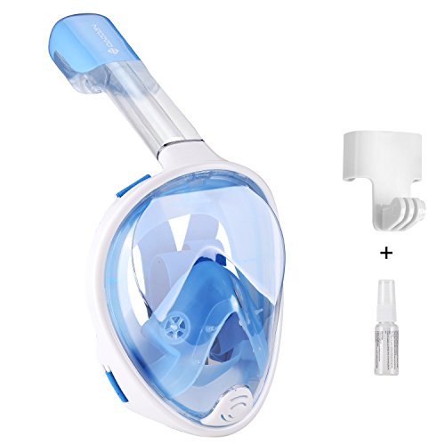 IDAODAN Full Face Snorkel Mask, 180°View Snorkeling Mask with Free Breath, Anti-Fog, Anti-Leak and Innovative and Comfortable Design Prevents Gag (white, S/M)