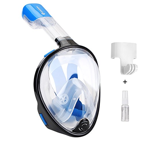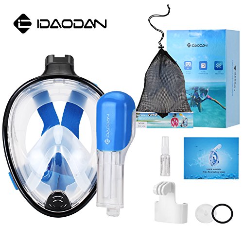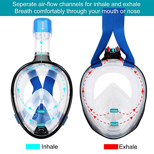 IDAODAN Full Face Snorkel Mask, 180°View Snorkeling Mask with Free Breath, Anti-Fog, Anti-Leak and Innovative and Comfortable Design Prevents Gag (black, S/M)