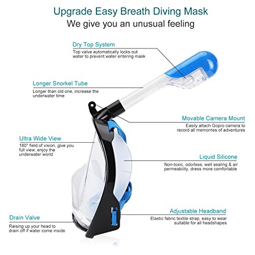 IDAODAN Full Face Snorkel Mask, 180°View Snorkeling Mask with Free Breath, Anti-Fog, Anti-Leak and Innovative and Comfortable Design Prevents Gag (black, L/XL)