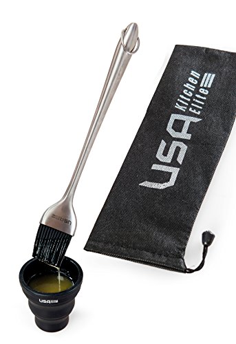- it comes along with a black folding cup for easy application of your sauce or oil.^SATISFACTION GUARANTEED: USA Kitchen Elite is a premium seller that sells only high quality products. All our products have life time warranty to ensure your satisfaction as a customer.^ELEGANT: Add a touch of finesse and style to your kitchenware with this beautifully looking basting brush.^QUALITY: This innovative pastry brush is constructed upon the higher standards. Its the best of the best.^DURABLE: You wont really need to spend money on another generic pastry brush. This one will ensure that you get the best value for your money by buying a brush that is durable.