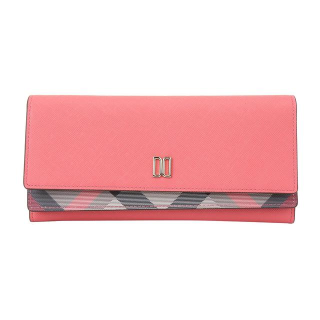 DD 로고 장식과 클래식한 체크 패턴 포인트 디자인으로 세련된 외관을 연출한 장지갑입니다.