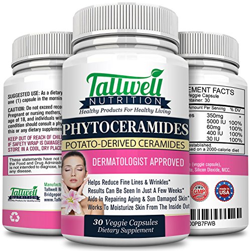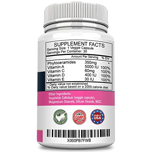 -. Feature : NATURAL SKIN REPAIR: Our formula is made from all-natural, essential ingredients that are specifically designed to help repair sun damaged skin, fight free radicals, and regenerate old skin cells. / YOUNGER, RADIANT SKIN: Phytoceramides do more than strengthen hair and nails, they improve your skin's natural elasticity and boost collagen production so your skin looks younger and healthier. It also helps tone and tighten skin! / ADVANCED ANTIOXIDANTS: Packed with powerful antioxidants, our potato-derived ceramides are natural skin moisturizes and help to replenish dry skin. Even better, they're safe for oily skin, dry skin, and even combination skin. / ESSENTIAL VITAMINS: With 350mg of ceramides per serving, you'll receive a potent combination of Vitamins A, C, D and E that are free of fillers, binders or harsh chemicals. And because they're made right here in the U.S., they're FDA inspected and crafted in a GMP-certified facility. / MONEY BACK GUARANTEE: We pride ourselves on having made the best skin care supplement on the market, which is why it comes backed by a 100% satisfaction guarantee.