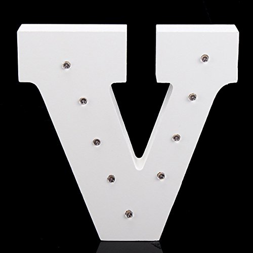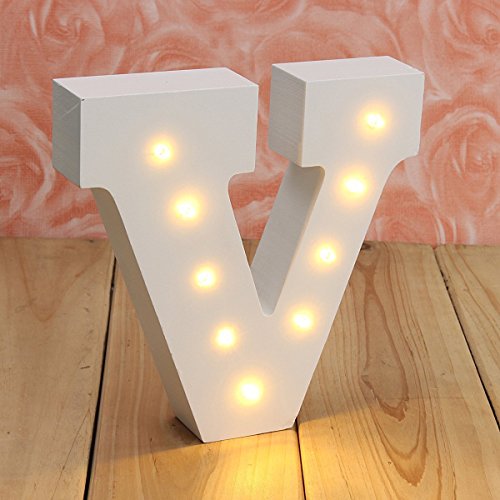 CHUQ Light Up Letters Wooden Alphabet A-Z Gift Boxed Name Wedding Party Standing or Wall Mounted Decoration (V)