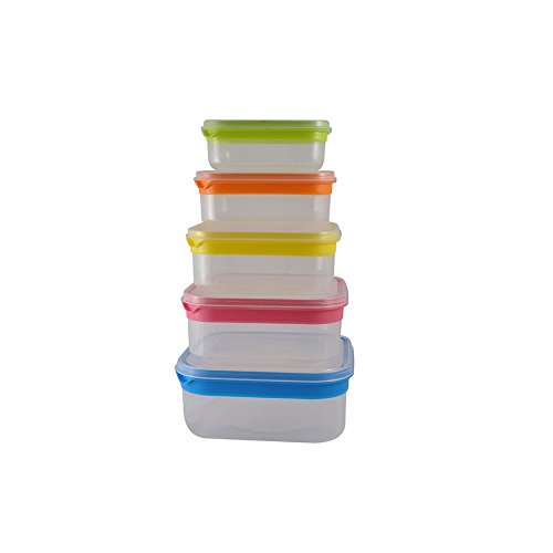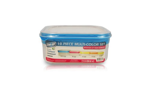 Stor-All Solutions Kitchen Accessories, BPA-Free Square Storage Containers With Assorted Color Lids, 10 Piece, Clear