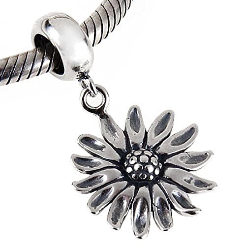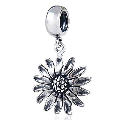 Sunflower Charm 925 Sterling Silver Flower Pendant Dangle Bead for Bracelet