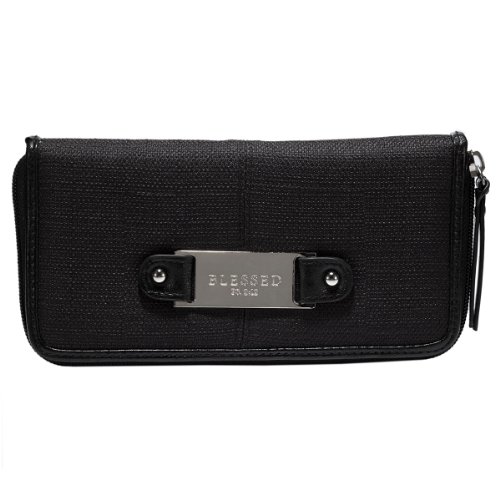 Black Linen Look Zippered Clutch Wallet Ensemble w/"Blessed" Badge