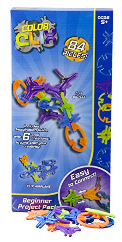 -. Feature : HOW THEY WORK: Color Clix is a revolutionary new construction system with easy to connect interlocking rings! With these connecting rings, you can build an airplane, bicycle and so much more! / CREATIVE DESIGN: These uniquely shaped building blocks mimic the same connecting angles found in a, crystals and DNA molecules! / OBJECTIVE: To unleash your creativity! Color Clix will open your mind and let your imagination run wild! The ideas are endless with these interlocking blocks! / WHAT'S INCLUDED: Color Clix Beginner Project Pack comes complete with 84 pieces and an imagination guide with 6 cool creations to get you started! / INTENDED USE: Due to the small pieces, this product is recommended for children ages 5 and up.