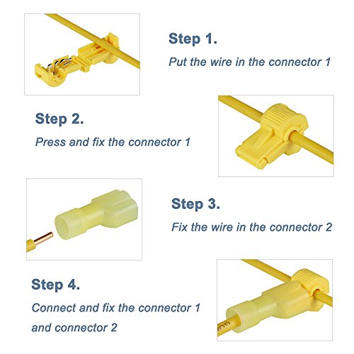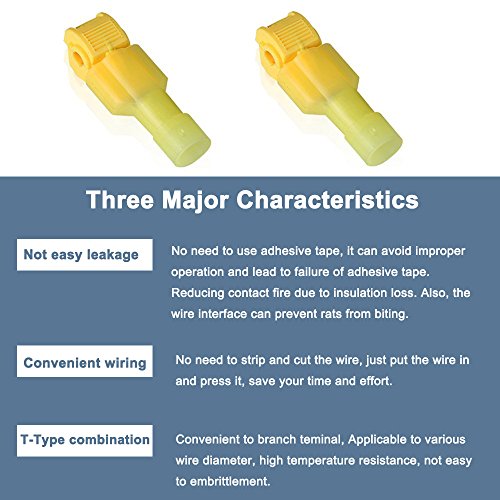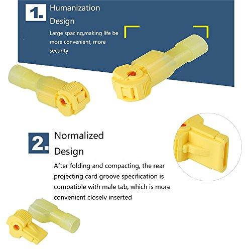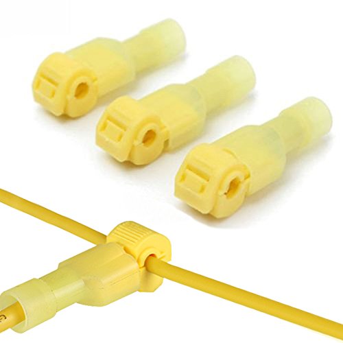 Bestgle Self-Stripping Electrical T-Tap Wire Spade Connectors of 50 Pairs Male and Female Butt Terminal Crimp Kits (Yellow)