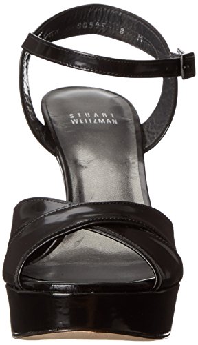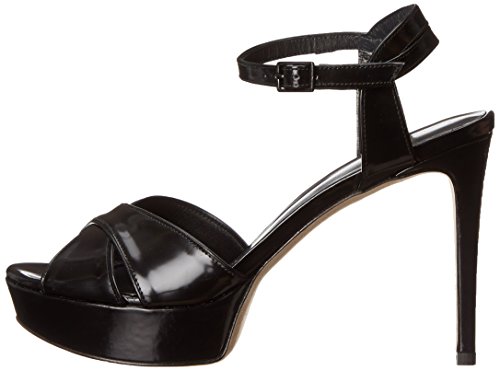 Platform dress sandal featuring crisscross toe straps and two-piece ankle cage with buckle