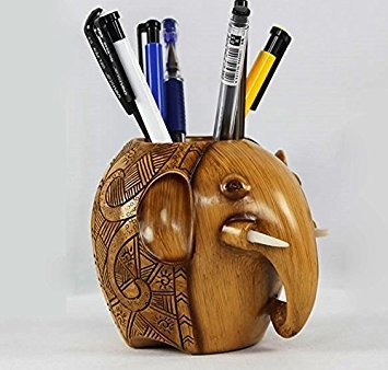 Z-Color ® Wood Carving Elephant Pencil Holder Fashion Creative Wooden Pen Holder For Office/School
