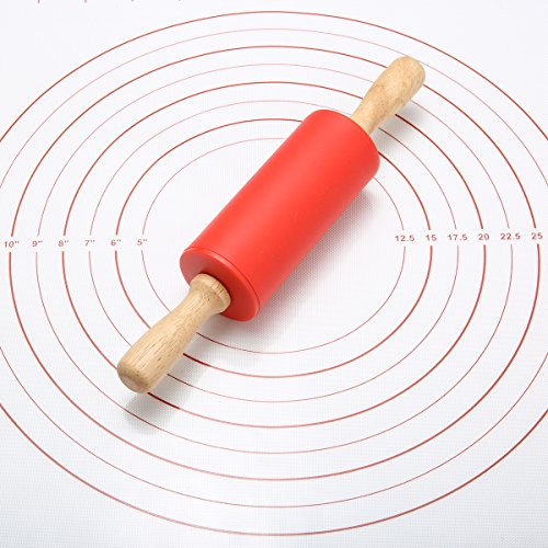 Skymore Non-Stick Silicone Rolling Pin & Silicone Baking Mat Set: Kit of Large and Small Dough Rollers, Reusable Pastry Mat With Measurements For Rolling Dough and Baking, Diy Baking Kit
