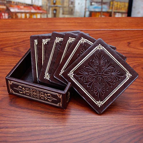 - ♡❤ FINEST MATERIAL - Made of high-quality durable PU leather with thermal insulating and anti-slide functions to protect your furniture and cups effectively. These six coasters help you avoid spillage and furniture surface damage from any hot or cold drink, whether it’s a whiskey alcohol cocktail or a beer bottle. To clean coasters and holder, wipe with soft damp cloth to preserve their beauty.
