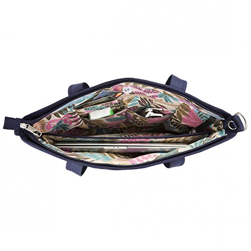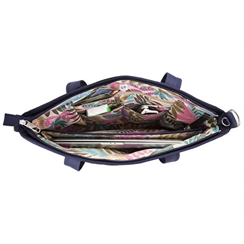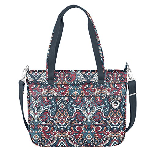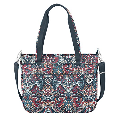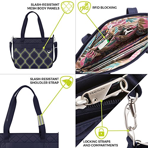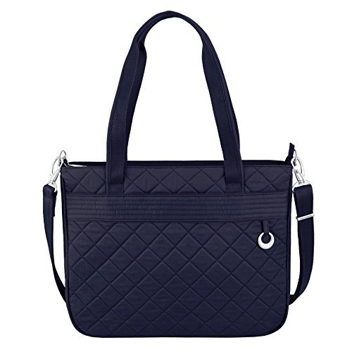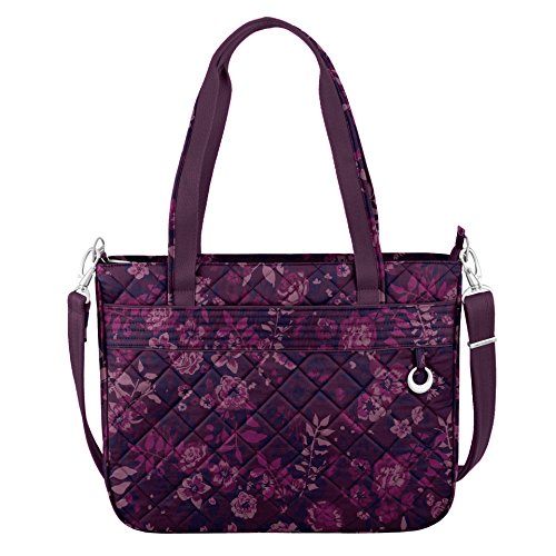 Studio : Travelon Publisher : Travelon Binding : Apparel Product Description This spacious tote is designed for business travel or everyday excursions. The padded laptop pocket holds a laptop to 15.6. With a roomy main compartment that locks for security and opens wide for full access and a front drop pocket for a smartphone you will stay organized and protected. It has slash-resistant carry handles along with adjustable removable shoulder straps. The add-a-bag strap allows tote to slide over handle of wheeled luggage. 0