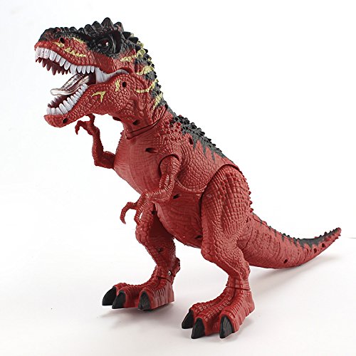 -. Feature : This Tyrannosaurus rex model is made from non-toxic SGS Certificated ABS material / It can walk like a real dinosaur with lights & Sounds / It can LAY EGGS, this fantastic action will bring a lot of fun to your honey children. / It will be the best gift choice to your curious children / This walking Tyrannosaurus rex toy is powered by (3) AA batteries (not included) Overall Dimensions: 16"(L) X 4"(W) x 6"(H)