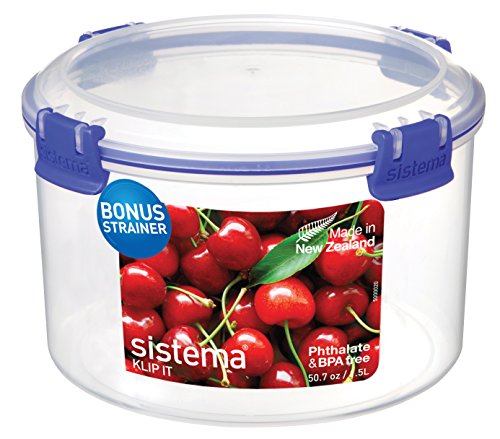 Sistema Klip It Collection Round Food Storage Container with Strainer, 50.7 Ounce/ 6.3 Cup