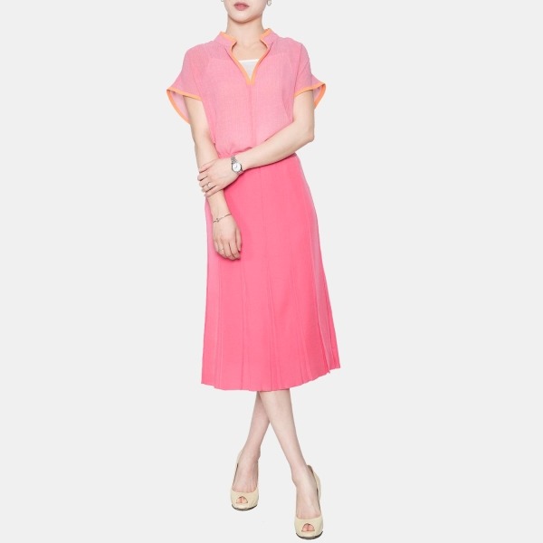 세밀하고 촘촘하게 짜여진 니트 조직이 포인트가 되는 플리츠 스커트입니다. 웨이스트라인에 밴딩으로 처리하여 편하게 착용가능한 아이템입니다.