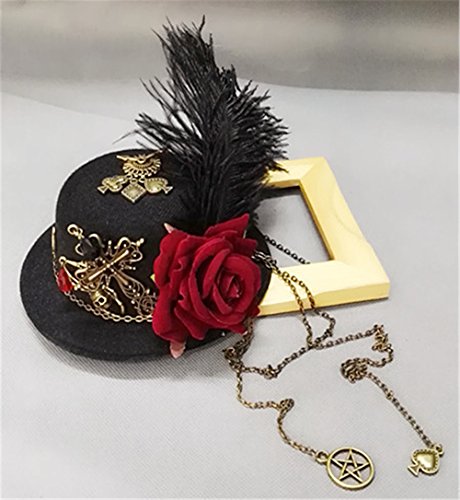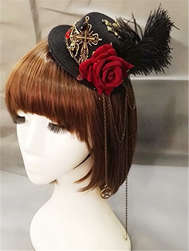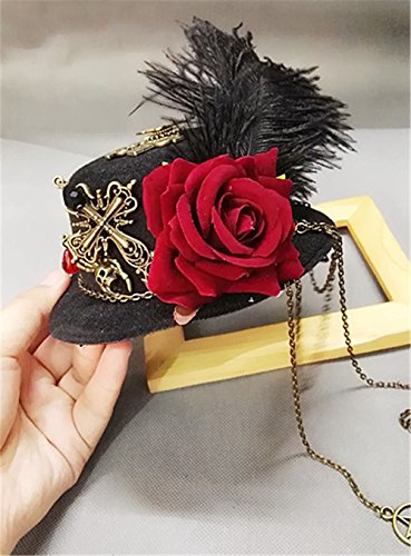 Retro Women Steampunk Rose Mini Top Hat Goth Geer Cross Chain Girl Hair Accessory Handmade (A)