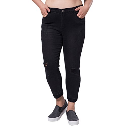 -. Title : Zhhlinyuan 美しい女性のための Classic Womens Ripped Distressed Pants Elastic Waist Denim Jeans Black ジーンズ Plus Size