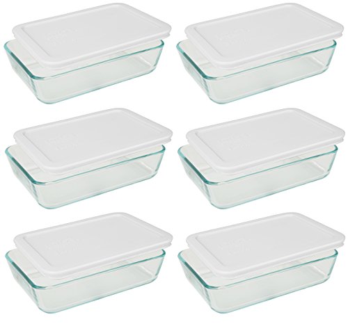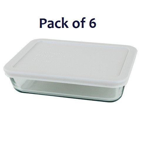 Pyrex 3-cup Rectangle Glass Food Storage Containers With White Plastic Lids.Use For Lunch Box, Storage Food ,And Baking Dish (pack of 6 Glass Containers) )